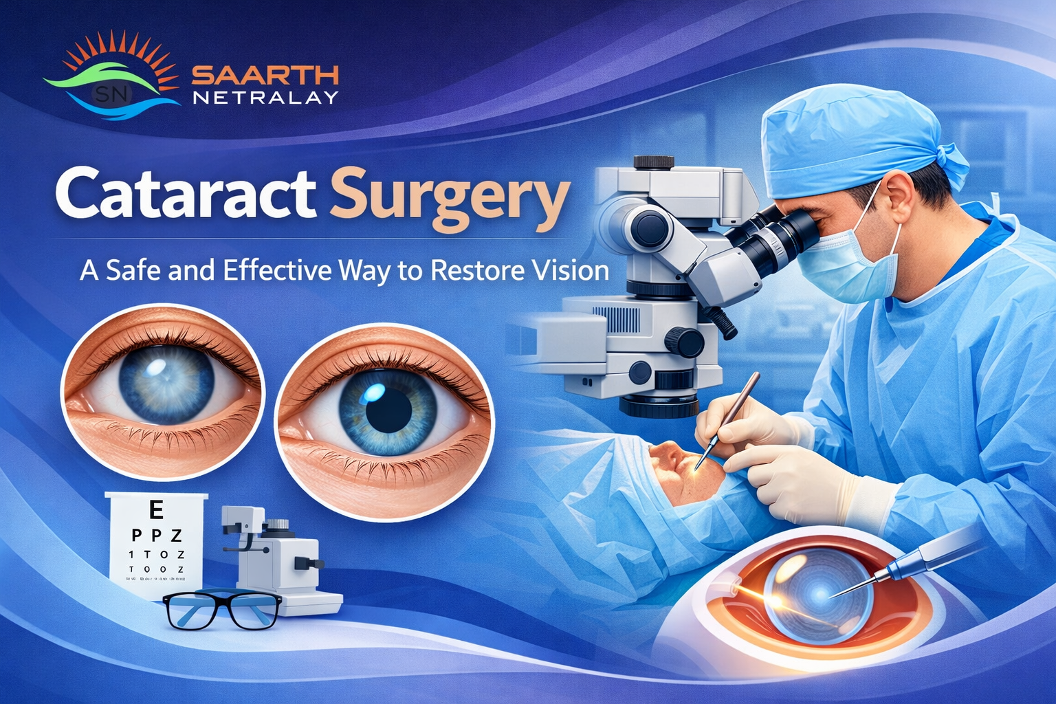 We at SaarthNetralay are committed to provide patient friendly services at the highest standards of quality eye care offering affordable rates. With the state of art equipments and distinguished expertise of world class surgeons, anesthetists and support staff, Saarth Netralay would soon blossom into a Centre of Excellence in eye care committed to values with ethical conduct and patient focused initiatives.
